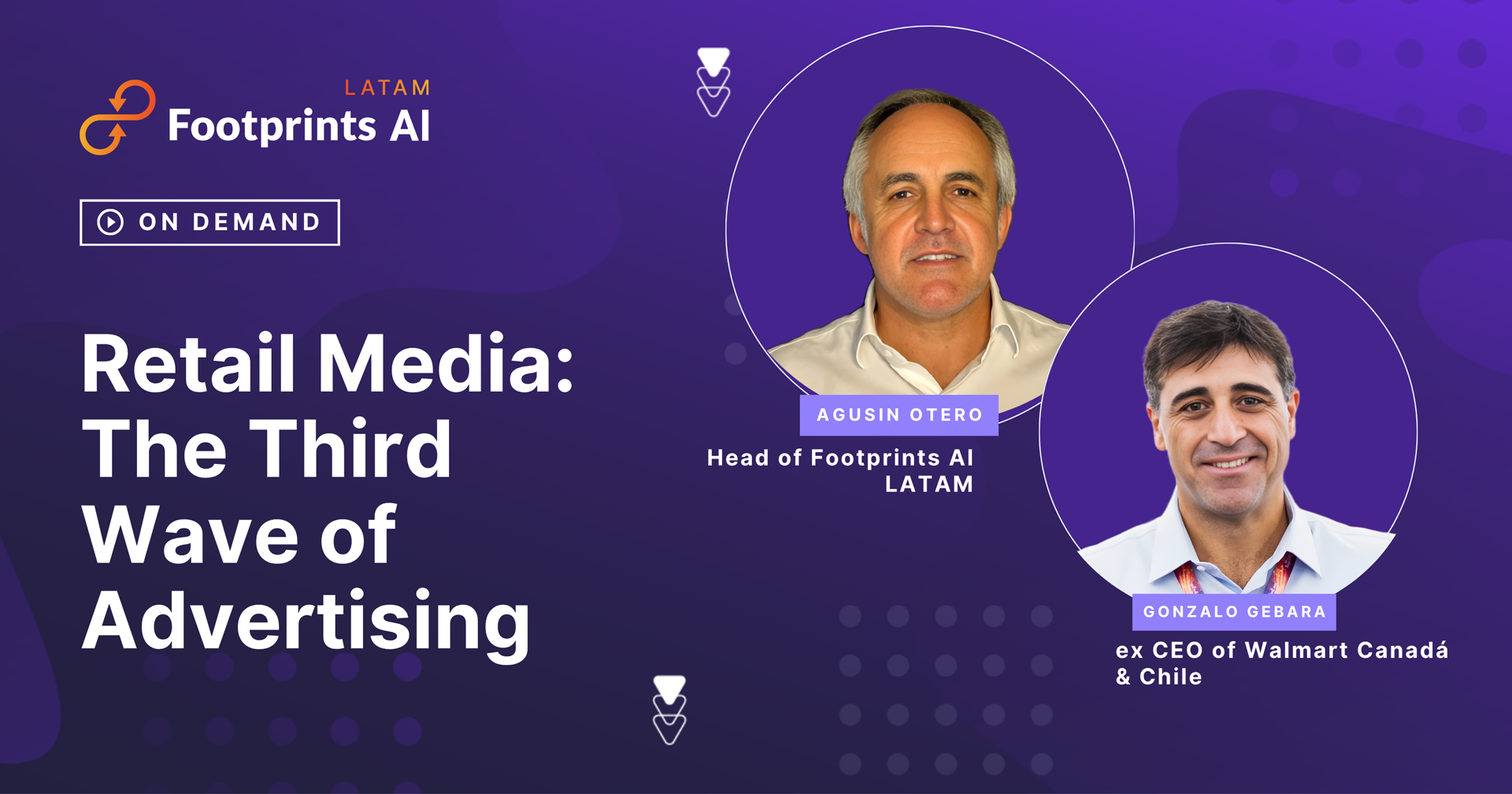 Agustín Otero (Head da Footprints AI LATAM) conversa com Gonzalo Gebara, que compartilha sua experiência liderando o desenvolvimento do Walmart Connect e a construção de um modelo de negócio rentável dentro do ecossistema de Retail Media.